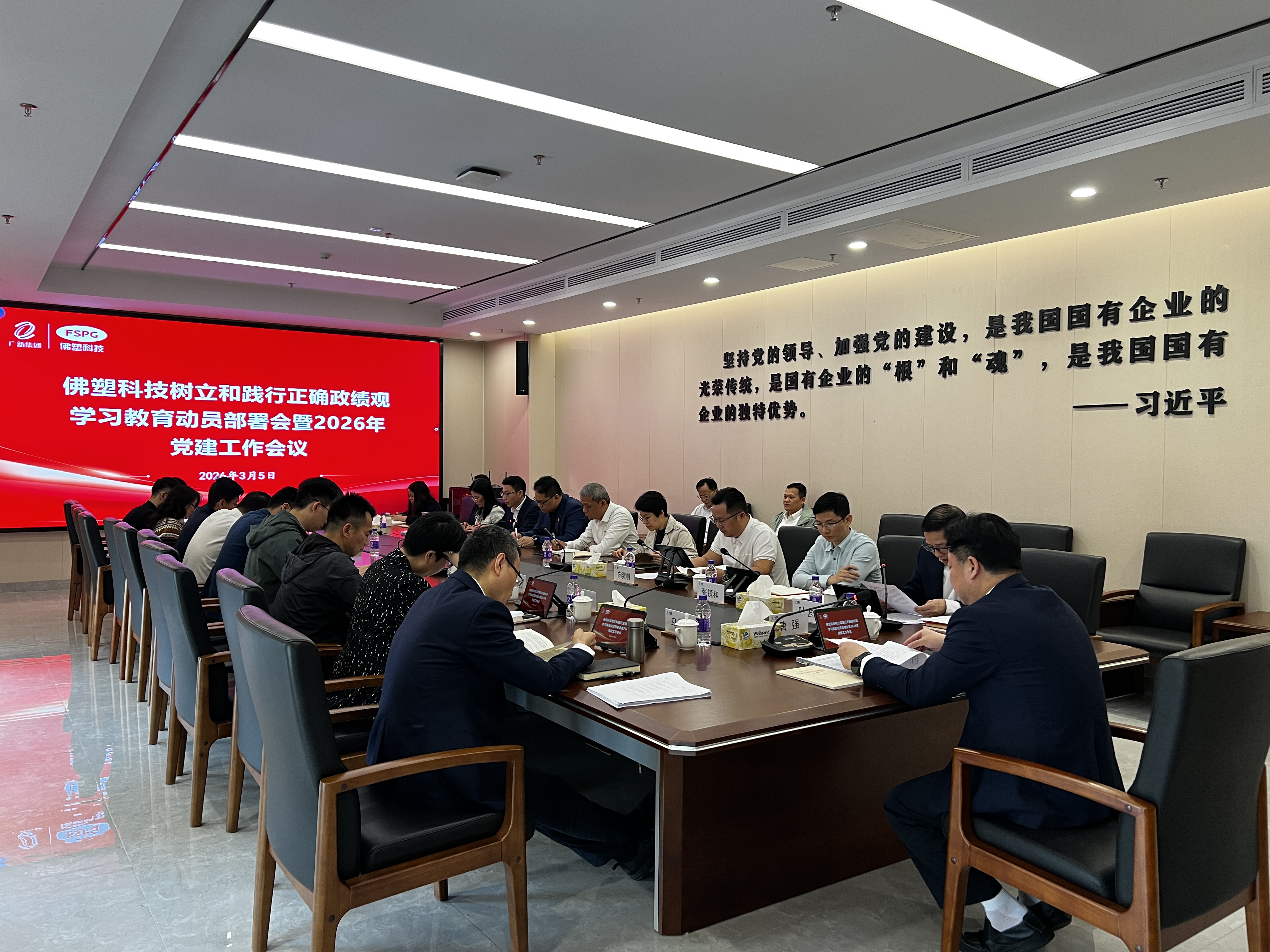 3月5日,佛塑科技党委召开树立和践行正确政绩观学习教育动员部署会。会议深入学习《习近平总书记关于树立和践行正确政绩观论述摘编》,传达中央党的建设工作领导小组会议和省委常委会会议精神,根据省国资委党委和广新集团党委工作要求,紧密结合公司实际,对开展树立和践行正确政绩观学习教育进行专题动员部署。公司党委书记、董事长唐强主持会议并作部署讲话,公司党委副书记、工会主席叶志超传达有关会议精神。
