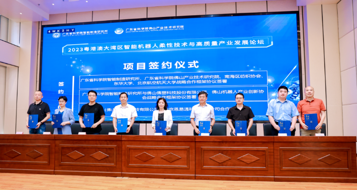 7月4日,由广东省科学院指导,广东省科学院智能制造研究所和广东省科学院佛山产业技术研究院共同主办、佛塑科技等单位协办的粤港澳大湾区智能机器人柔性技术与高质量产业发展论坛在佛塑科技总部举行。省科学院党委书记、国际欧亚科学院院士廖兵,佛山市科学技术局党组成员、副局长梁达明先后在会上致辞。公司党委副书记、总裁马平三,副总裁、董事会秘书何水秀出席会议。