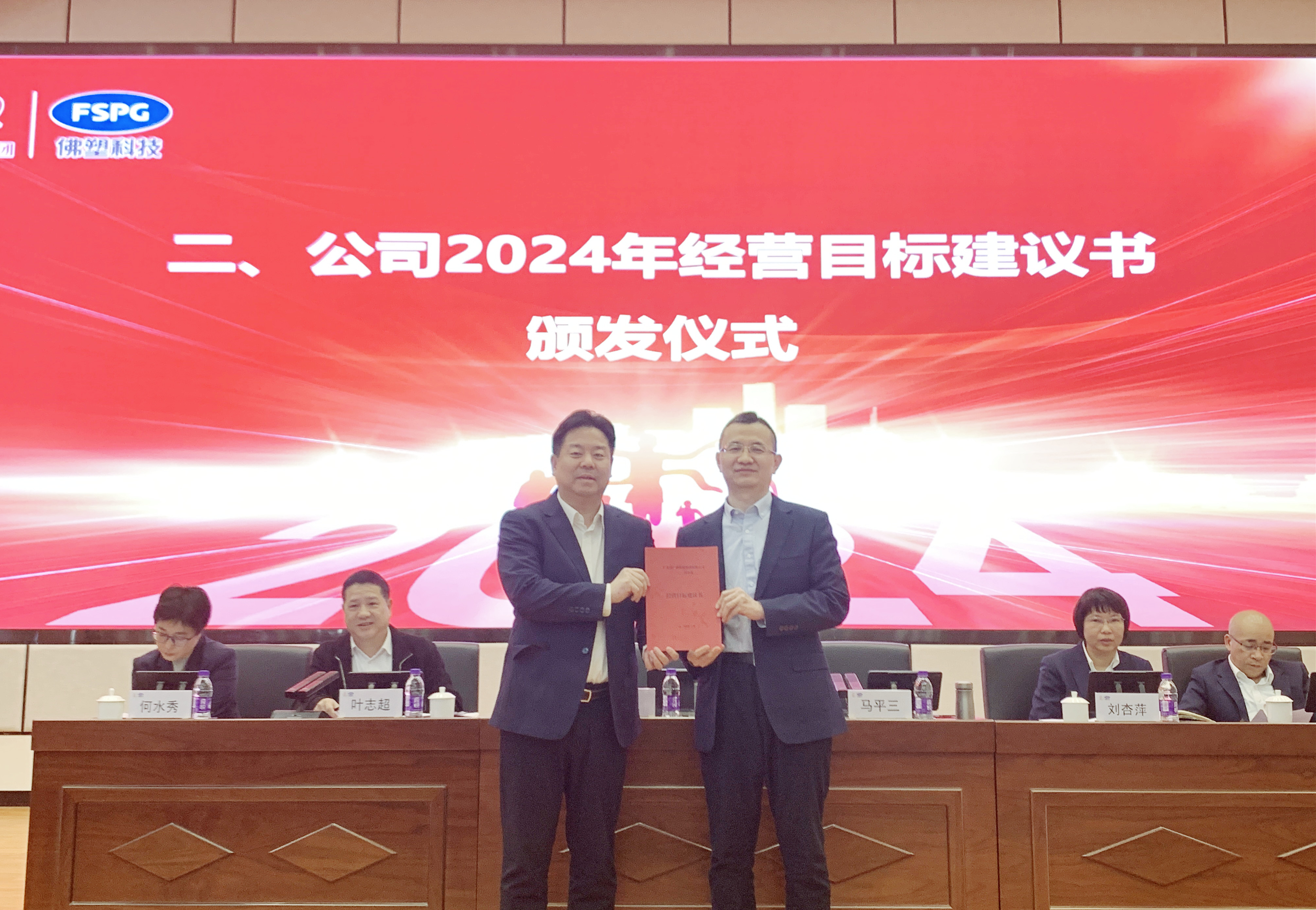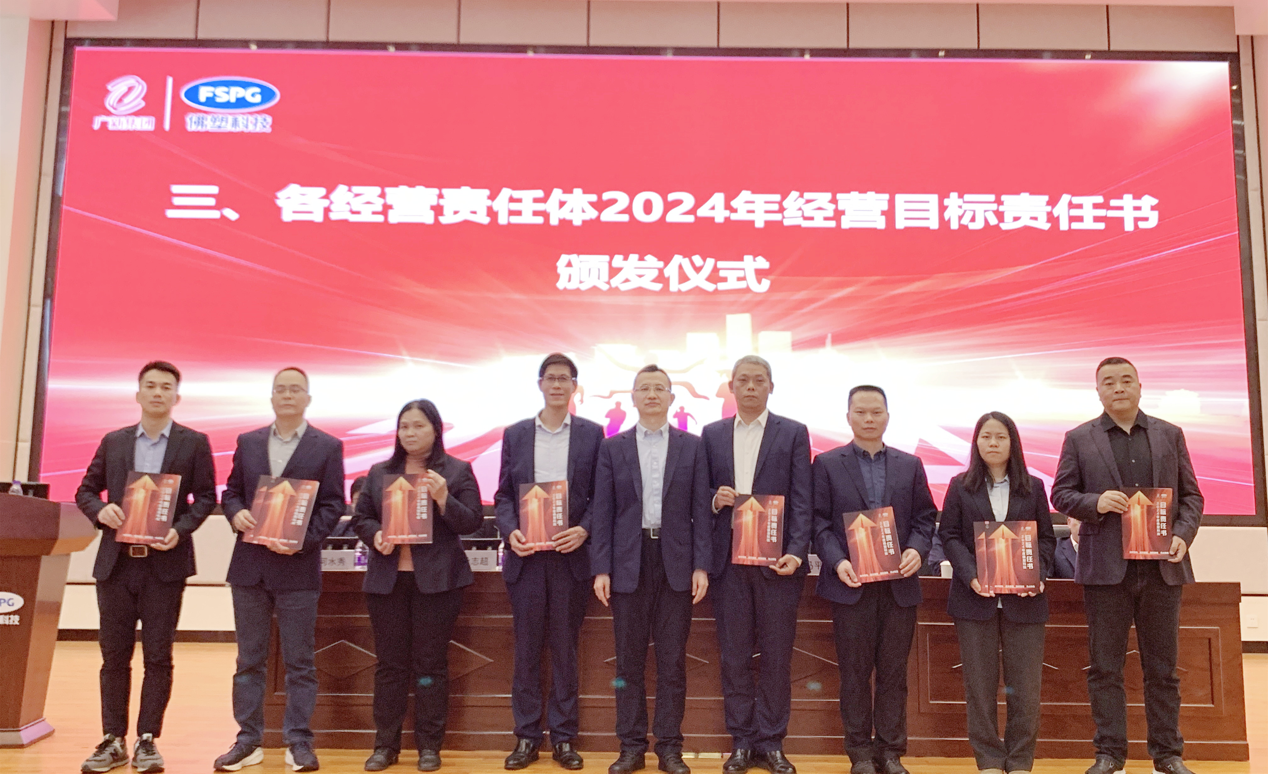 会上,公司副总裁、董事会秘书何水秀介绍了公司2024年度商业计划,明确年度目标任务。各经营责任体领取2024年目标责任书并进行集体宣誓仪式。