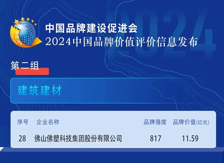 近日,“2024中国品牌价值评价信息”榜单发布,佛塑科技成功上榜。