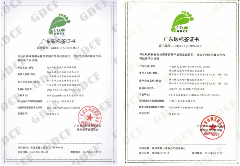 近年来,佛塑科技不断加大绿色生产投入和光伏绿电能源的利用,主动谋划和加快产业绿色低碳转型升级的步伐。包括建设分布式屋顶光伏近5.3万平方米,2024年1-9月实现发电约250万千瓦时;积极开展产品碳足迹评价及碳标签工作,优化生产流程,提升品牌“绿色竞争力”,其中,易事达公司5微米锌铝金属化聚丙烯薄膜获得2023年广东碳标签证书,纬达光电车载偏光片获得2024年广东碳标签证书。