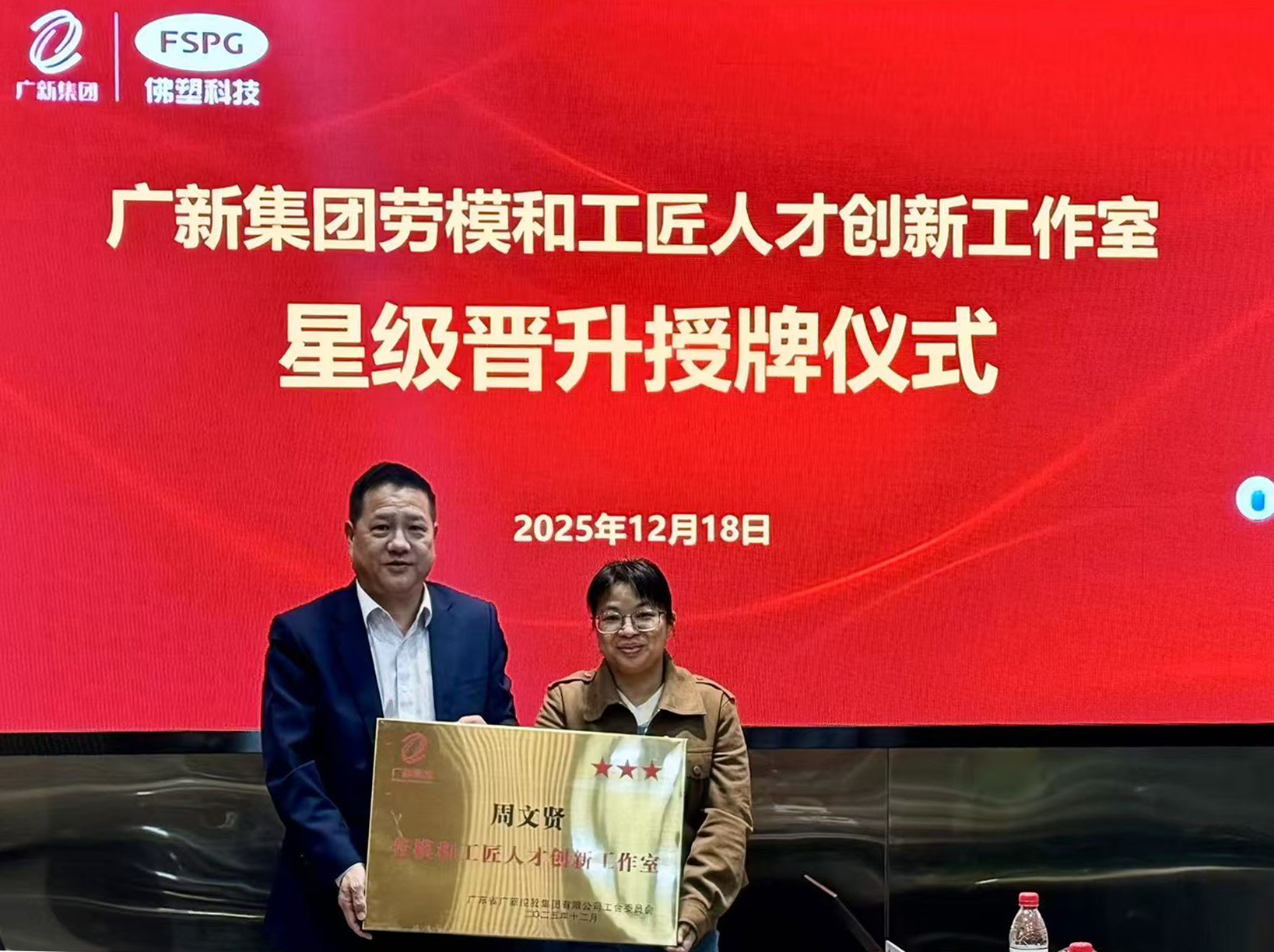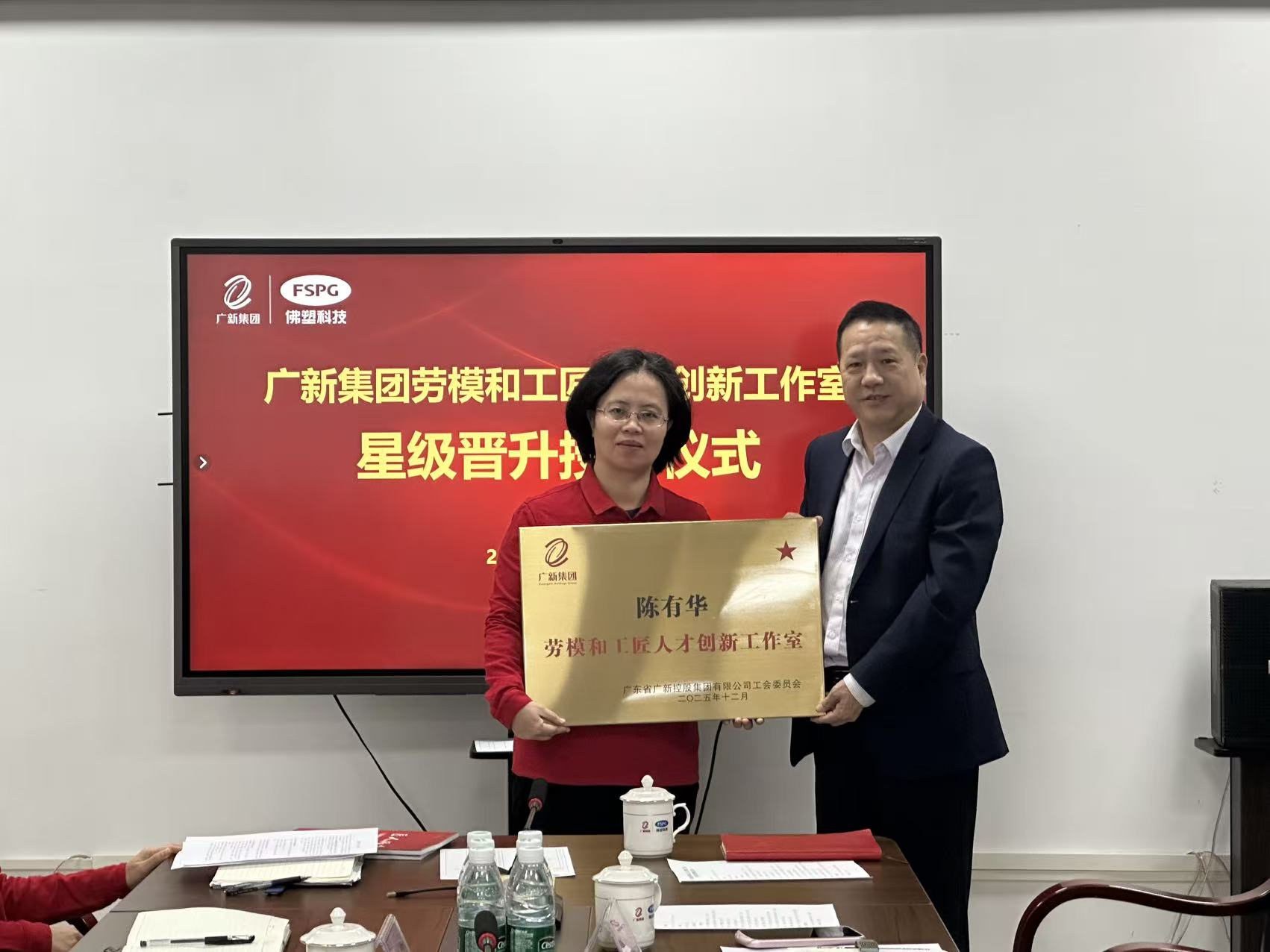 为大力弘扬劳模精神、劳动精神、工匠精神,扎实推进产业工人队伍建设改革,充分激发广大职工的创新创造活力,佛塑科技工会于近日举办2025年广新集团劳模和工匠人才创新工作室星级晋升授牌仪式。佛塑科技党委副书记、工会主席叶志超出席仪式并为星级晋升工作室授牌。