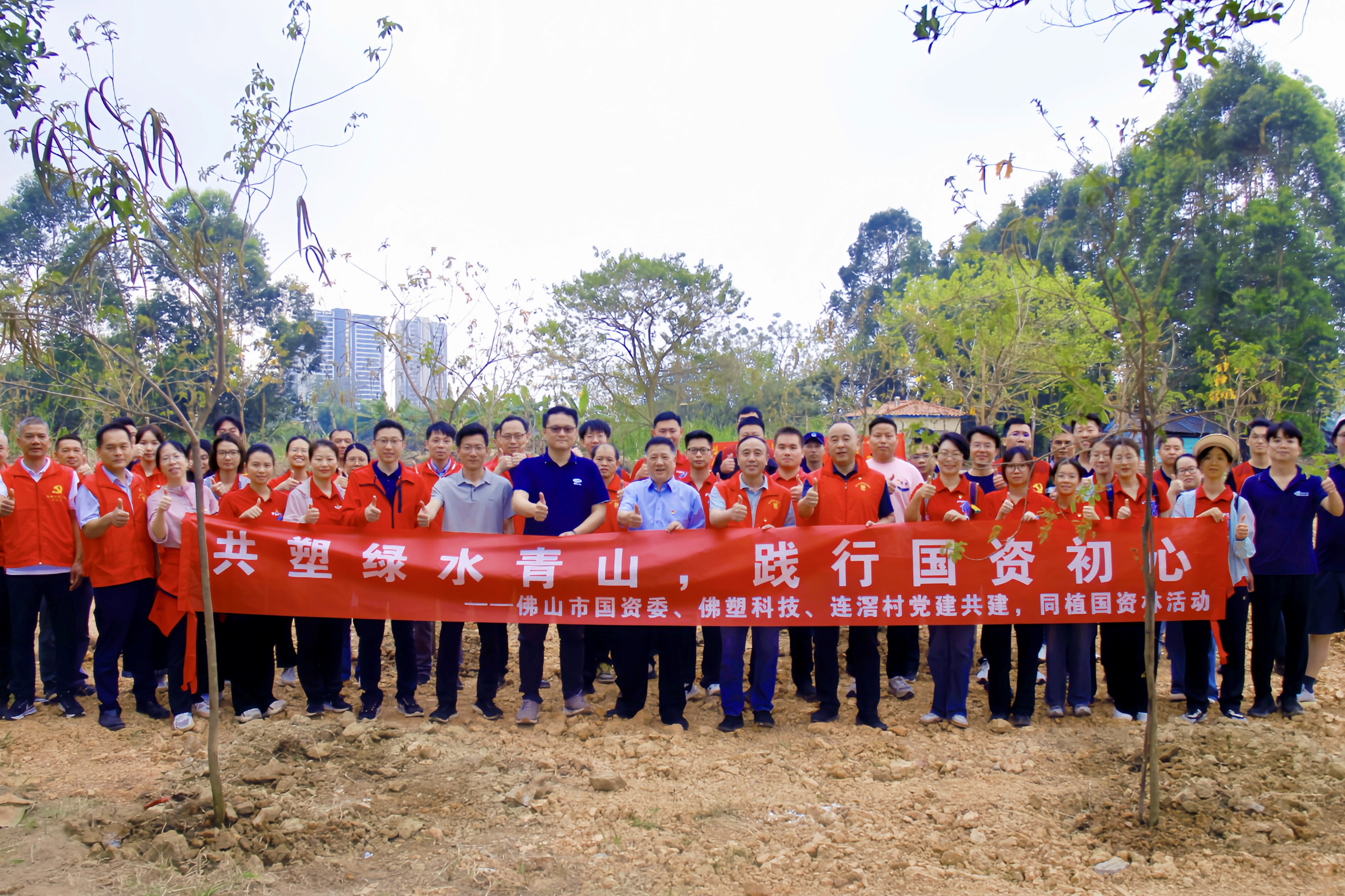 2026年3月20日上午,佛塑科技联合佛山市国资委、三水大塘连滘村共同开展“共塑绿水青山,践行国资初心”党建共建植树活动。公司党委副书记、工会主席叶志超带领公司各党总支(支)部30余名党员及青年代表,与佛山市国资委干部职工一同为连滘村增添新绿,以实际行动贯彻绿色发展理念,助力“百千万工程”走深走实。