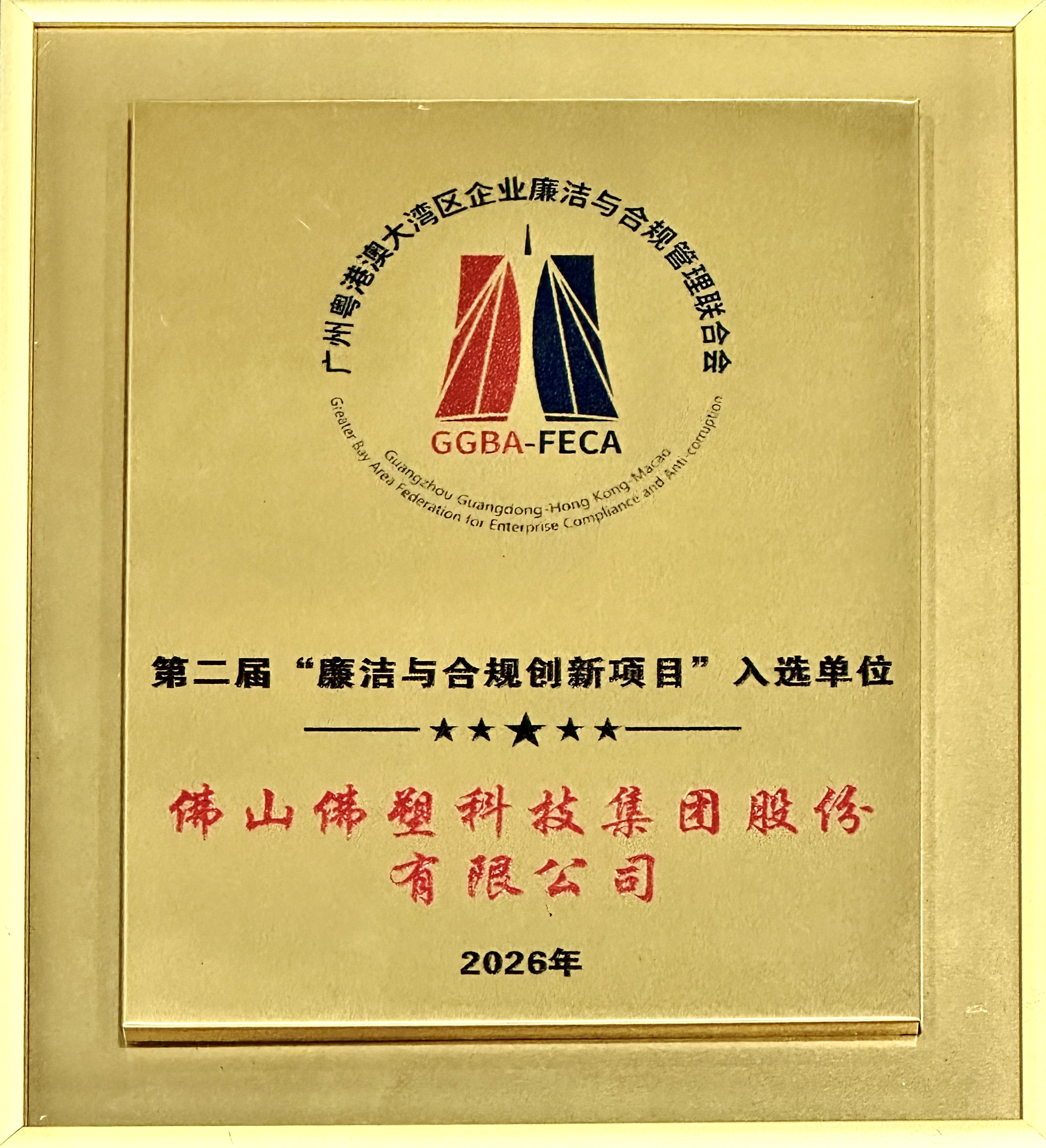 近日,2026全球AI风控领袖峰会暨第六届数字化转型与创新峰会(广州站)圆满落幕。佛塑科技《以“4A领导力模型”铸魂,以“廉洁风险防控 + 综合监督”赋能——佛塑科技廉洁治理创新实践》成功入选第二届“廉洁与合规创新项目”。